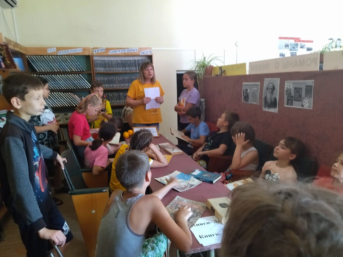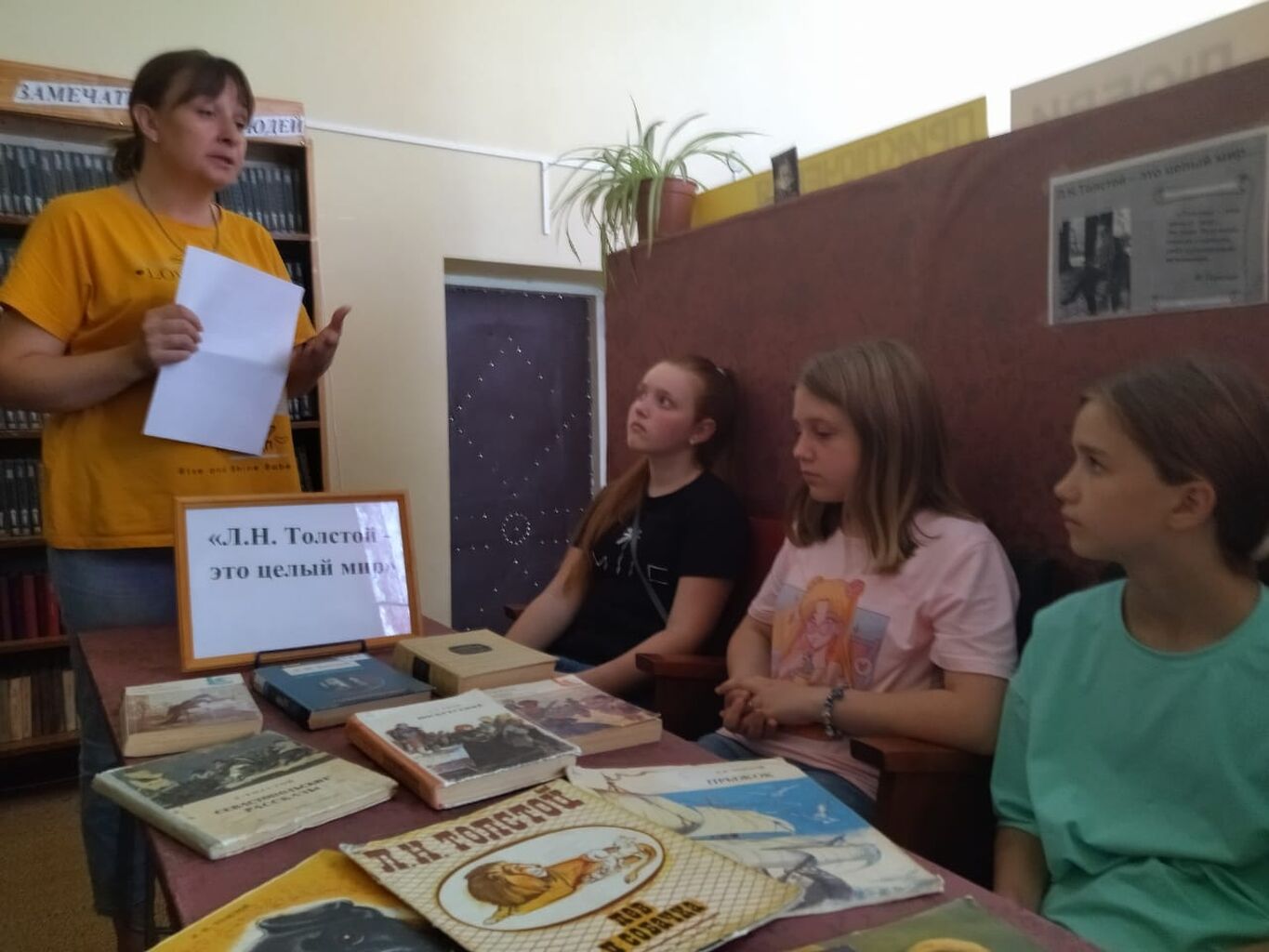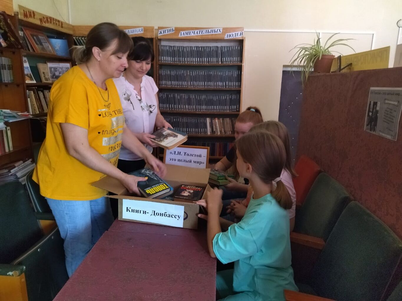 14.07. 2022 года в МБУ Среднечелбасская поселенческая библиотека в рамках Акции «Книги – Донбассу» прошли массовые интересные мероприятия, которые были посвящены творчеству Л.Н. Толстого. В Калининской поселенческой библиотеке для читателей всех категорий был проведён библиотечный час «Л.Н. Толстой – это целый мир». На этом мероприятии присутствующим рассказали о том, какова роль, значение литературы в жизни человека. Далее на примере биографии и творчества Л.Н. Толстова обсудили и сделали вывод, что литература – это мощный источник воспитания духа, личности. В конце мероприятия перед читателями выступила Гриценко Т.Н. – депутат Совета Среднечелбасского СП. Она рассказала о ходе специальной военной операции на территории Донецкой и Луганской республик и объявила об Акции «Книги – Донбассу». Читатели активно поддержали слова депутата.